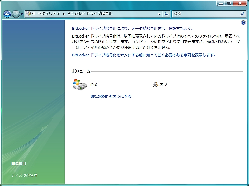 起動ドライブを暗号化する「BitLockerドライブ暗号化」機能