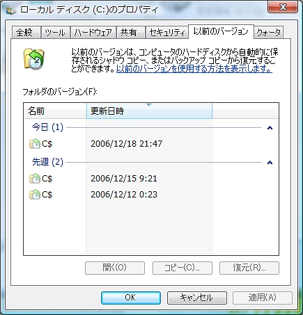 Windows Vista Business/Enterprise/Ultimateの各エディションでは、これまでサーバ系OSで採用されていたバックアップ技術「Windows ShadowCopy」が利用できる。