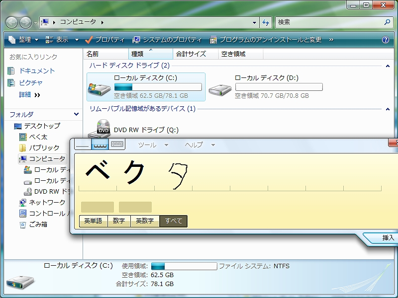 従来は専用のエディションが必要だったタブレットPC機能は、Windows Vistaでは本体に統合化された。このためタブレットPCでのみ利用できた入力機能は、デスクトップパソコンでも利用できるようになった。これらの機能を利用すれば、USB接続のタブレットなどを使用して「手書き入力」なども行える。