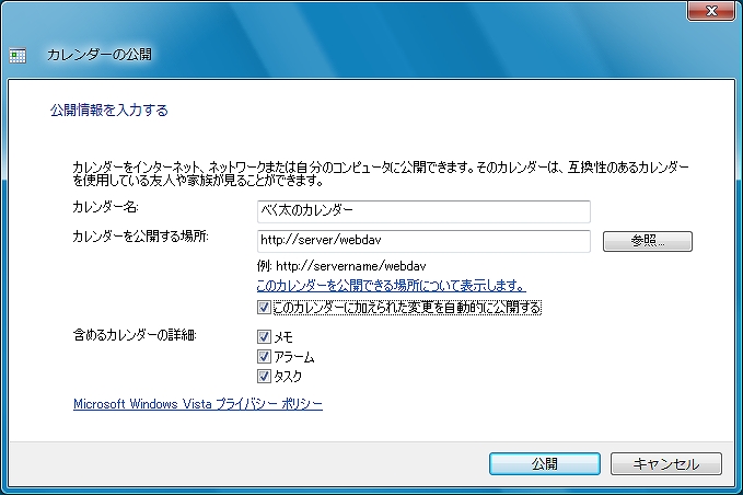 注目したいのはネットワーク経由でスケジュールを公開できる点だ(図09)。この機能を使えば、自分のPCに入れたスケジュールをネットワーク経由で他の人から参照することもできるようになる。いわば簡易的な「グループウェア」としても利用できる。もちろんどのスケジュールを公開するかは、入力する人が自由に選択することが可能だ。