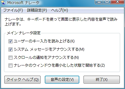 いわゆる「画面読み上げ」機能では、マウスでポイントされた部分の内容を自動で読み上げる「ナレータ」機能が搭載された。ただし、現状でこの読み上げ機能は、英語版のみとなっているようで、まだ使いづらい。今後、日本語読み上げ機能や、より高品質、高レスポンスな読み上げモジュールの提供に期待したいところだ(図11、図12)。