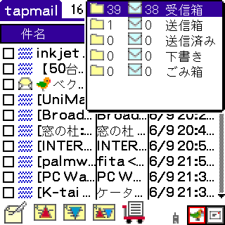 「tapmail2 Professional Edition」は、わかりやすいインタフェースにマルチアカウント対応、プレビュー受信、フィルタによる振り分け機能、標準メールとの連携、PIM情報の送信、添付JPEGの表示など非常に多くの機能を備えたメールソフト。