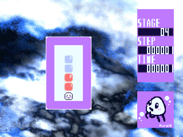 「Purple」は、「赤」と「青」の2種類のブロックを使った純粋思考型のパズルゲーム。ルールはシンプルで、フィールド上に散らばった赤色と青色のブロックを押して重ね合わせることでブロックが紫色に変化する。ステージの中にあるブロックをすべて紫色に変えることができれば、ステージクリアだ。とはいえ、単純に手近なブロック同士を重ねればよいというわけではない。赤と青のブロックには、すべて1からはじまる番号が振られており、同じ番号のブロッ...