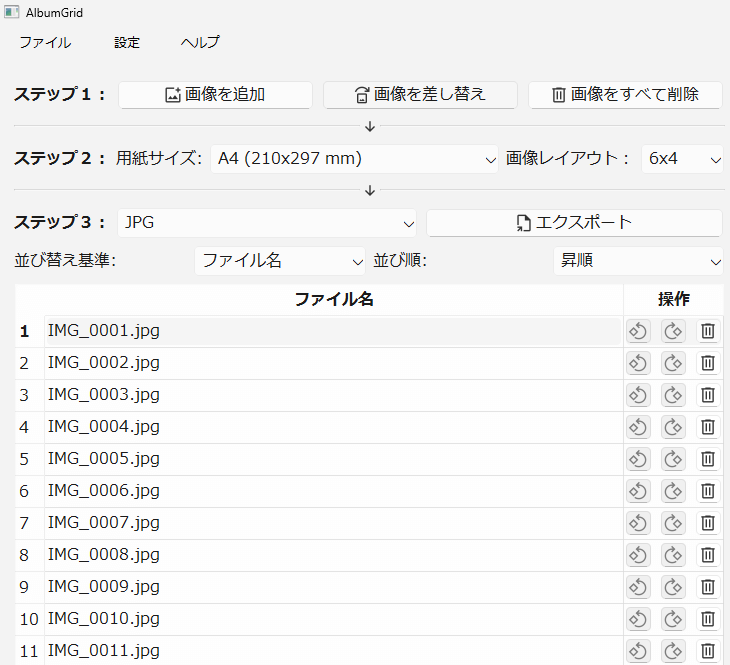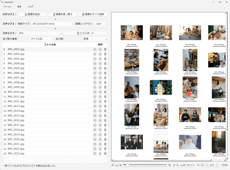 お気に入りの写真をきれいに並べて一覧にして印刷できるアルバム作成ソフト