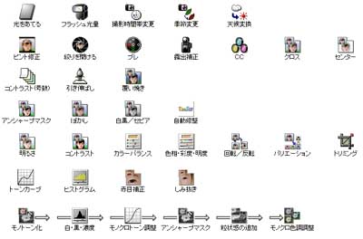 『デジカメde!!フォト工房2』で新たに追加したツール群です。ただのモノクロツールの提供だけでなく、色のプロフェッショナルの観衆による、より味のあるモノトーン作品に仕上げるノウハウをコース化しました。