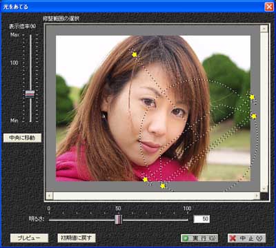 実際に対象物に光を当てるように、帯状に光の明暗を調整します。ライトやレフ板を使っての光量調整を意識した操作方法で、写真修整を行います。発光物の幅の変更や光の長さ・角度が、自由に調整できます。今回のバージョンでは、さらに自然な光を再現するように効果の再調整をしました。