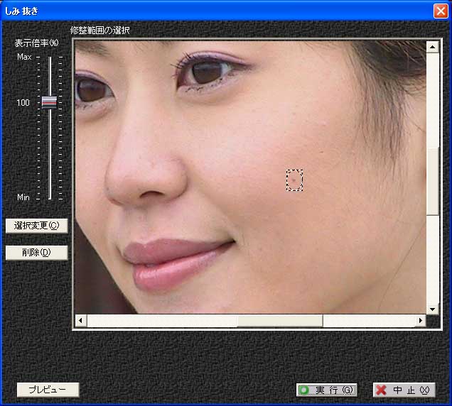 人の肌などで、写したくないしみやそばかす・ほくろ・ピアス跡などを除去します。修整箇所を選択するだけで、選択範囲の周囲から近似の色を写して隠すので、自然な仕上がりが簡単に得られます。