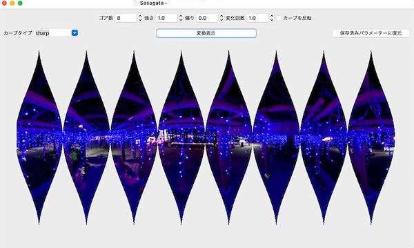 360度画像を分割・変形し、舟形多円錐図法風に並べるツール(Mac版)