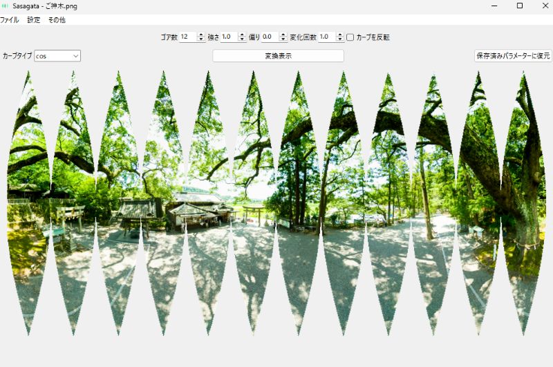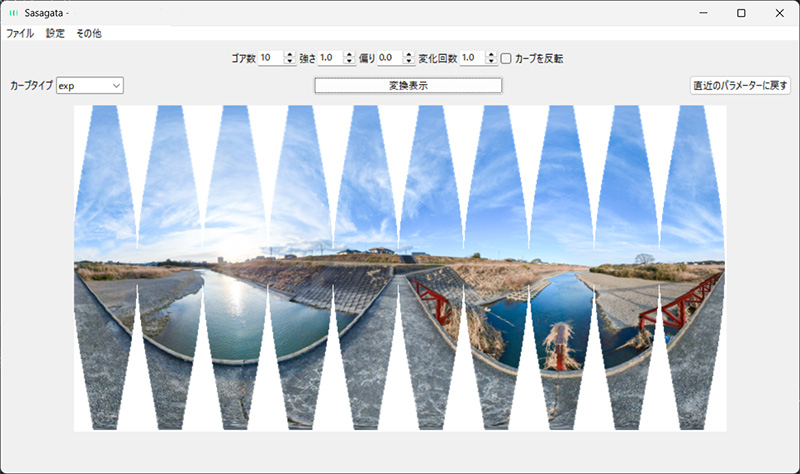 360度画像を分割・変形し、舟形多円錐図法風に並べるツール(Windows版)