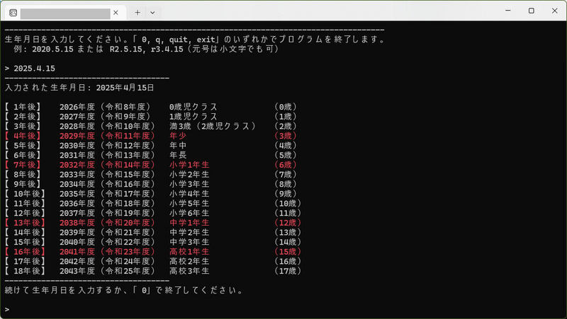 誕生日の入力で学年を表示! Web版同胞