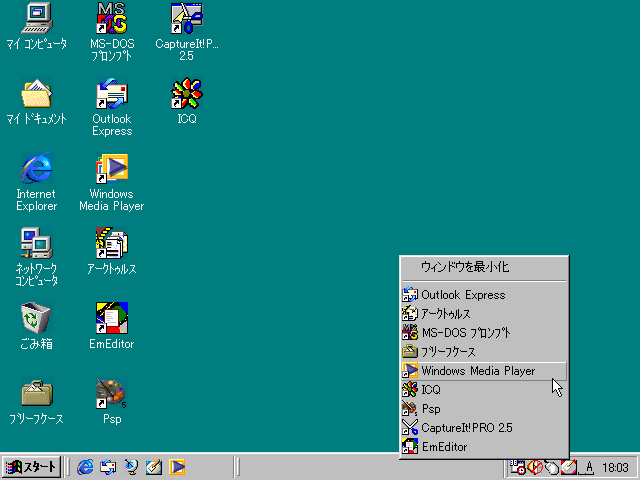 タスクトレイアイコンを左クリック。タスクトレイからデスクトップのアイテムが扱える
