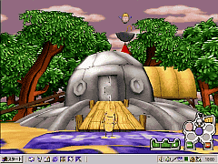 はなぐもり森では、場所ごとにさまざまな機能が割り当てられている。使いたい機能のある場所にエポを移動させ、アクセスするというのが基本的な仕組みだ。はなぐもり森のスタートとなるのは「UFO広場」。本ベータ版では「UFO」「マイコテージ」「コザルSTORE」の3ヵ所を利用することができる。はなぐもり森の中での移動は、マウスのクリックかカーソルキーで行う。画面右下に表示されるマップのクリックで、直接各ポイントに移動することもできる。