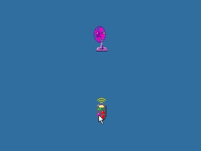 初回起動時に問題(?)となるリモコン。ちゃんとボタンをクリックして操作する。「Senpoo気」は首振り中