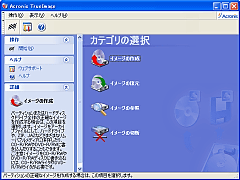 メイン画面のインタフェースはWindows XPの操作画面に似たデザインで、右側の「カテゴリの選択」から作業を選択すると、左側のサイドバーに作業の詳細が表示される。「イメージの作成」「イメージの復元」といった個々の作業もウィザード形式で進めることができ、はじめてでもわかりやすい。