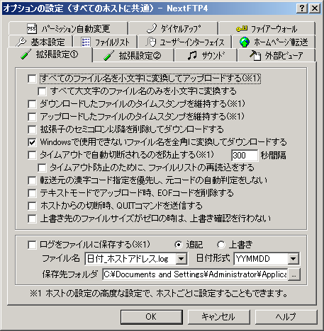 オプション設定画面。設定可能項目は多岐に渡り、詳細な設定を行える