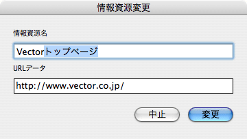 「情報資源変更」ダイアログ。資源名、URLを任意に変更できる