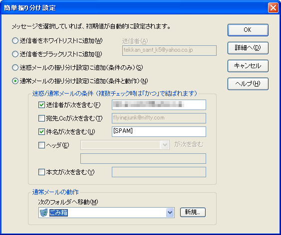 簡単振り分け設定画面。振り分け設定は詳しく設定することも、要点だけ簡単に設定することもできる