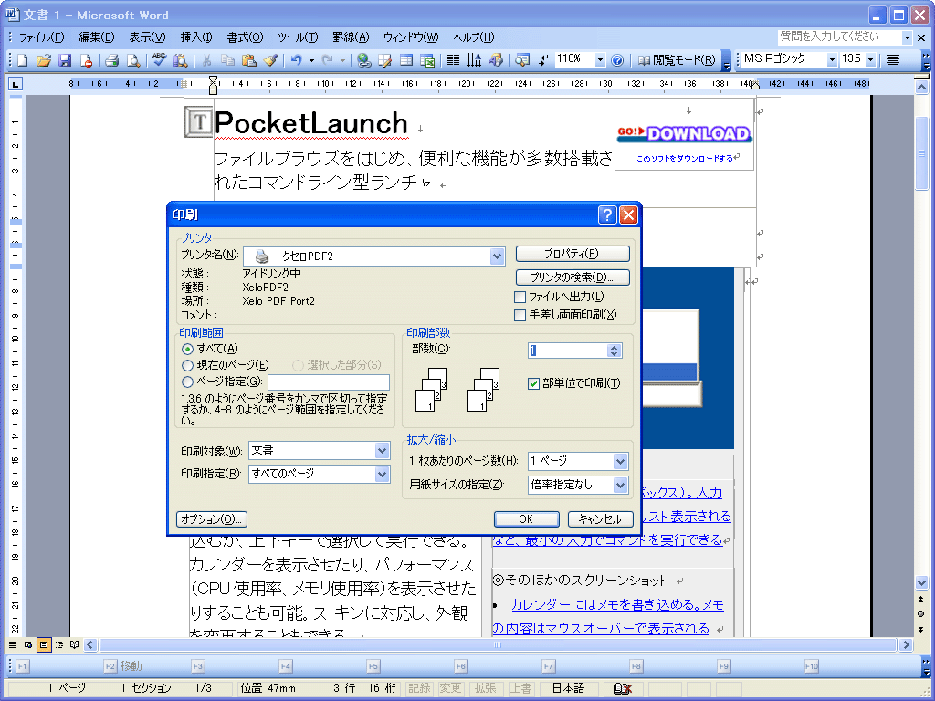| 37---- | 高品質PDFファイルを簡単に作成! Windows Vistaに対応したクセロPDFのアップバージョン (12,064K) |