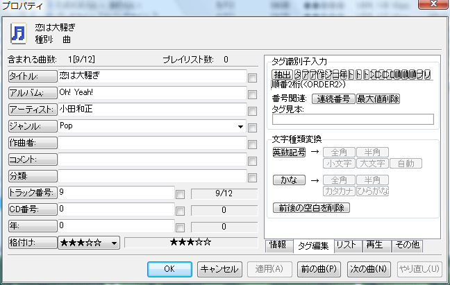 プロパティ設定画面。タグ情報は「iTunes」よりも詳細に設定することが可能。タグ情報の追加はフォルダ構造をもとに行える
