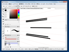 メイン画面はタブ切り替え式。複数のファイルを同時に開き、切り替えながら編集することができる。メイン画面の周囲には「カラー」「ブラシ」「ブラシコントロール」「ナビゲーター」「レイヤー」といったツールウィンドウが配置される、オーソドックスなインタフェースとなっている。