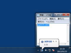 の三つ。(1)クリップボード監視型の常駐ソフト「Clapte」には、一般的な電卓ソフトにあるような、数字や演算子入力用のボタン、数式入力用のユーザインタフェースがない。計算対象となる数式は、クリップボード経由で取り込まれる。例えば、テキストエディタに「2*3+4」などと入力してコピーすれば、クリップボード上の数式が自動的に読み取られ、計算が実行される。計算結果は、タスクトレイアイコンからポップアップするバルーンに表示される。「バルーンのクリック」「同じ数式のコピー」「あらかじめ設定したホットキーの押下」のいずれかの操作で、計算結果をクリップボードにコピーすることも可能。数式コピー元のアプリケーションなどにペーストして、計算結果をそのまま利用できる。