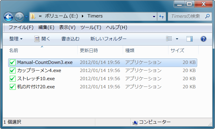 プログラムをコピーし、ファイル名を「タスク名+分数」にリネームすることで、いくつでもタイマを作れる