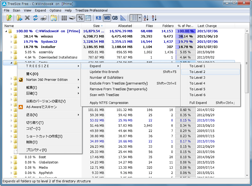 コンテキストメニューからすばやく起動できる、フォルダ/ファイルサイズの調査ソフト