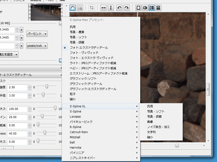 独自アルゴリズム「S-Spline」により、細部まで質感の高い拡大を可能にした画像リサイズソフト