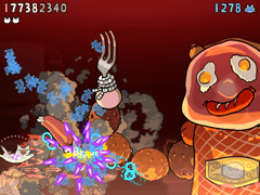 自機を丸く囲うように表示されるゲージがたまった状態で【X】キーを押すとボンバーが発動。ボンバーには──威力が高いのはもちろんだが──「当たった敵弾を消し、スコアアイテムに変える」という特徴がある。ハイスコア狙いに必須なだけでなく、密集した敵弾の中を通り抜けるときにも便利だ。ボンバーのゲージは、敵を倒したり、ショットを当てたりすると出現する、猫の形をした「ネコアイテム」を集めるとためることができる。