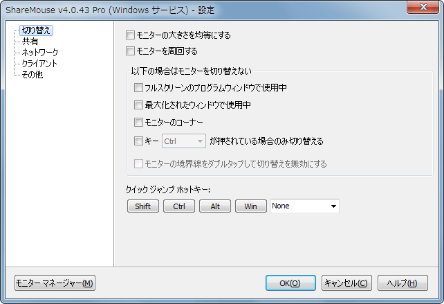 設定画面(切り替え)。モニターを周回する/しないや、ある条件でモニターを切り替えないなどを設定することが可能
