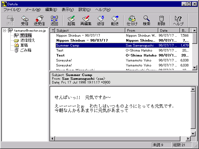 ネットニュース機能を統合したメールソフトには、このほかにOutlook Expressなどがあるが、これはフリーソフトと呼ぶにはちょっと反則に近い。これ以外で考えると、ネットニュースとメール機能を統合したソフトはぐんと少なくなってしまう。メールとニュース、どちらも活用している人にとっては、これらを統合したDatulaは、かなり魅力的なソフトに思えるはずだ。