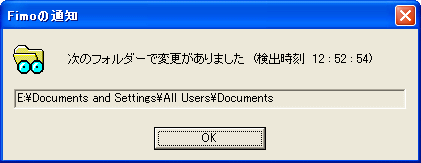 通知ウィンドウ。監視フォルダに変化があったことを通知してくれる