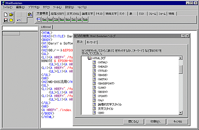 自由度に優れたタグ挿入型HTMLエディタ 「HtmlEvolution 1.12」 |