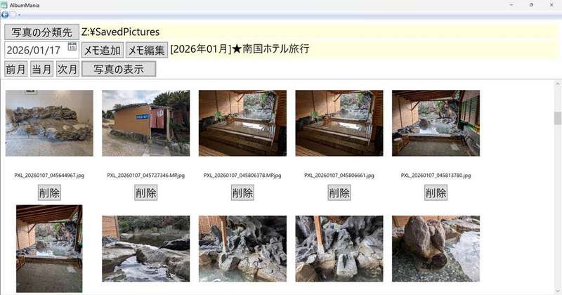 カメラロールなどから年月で写真を分類する さらに、年月単位でメモのついたマイアルバムを作れるソフト