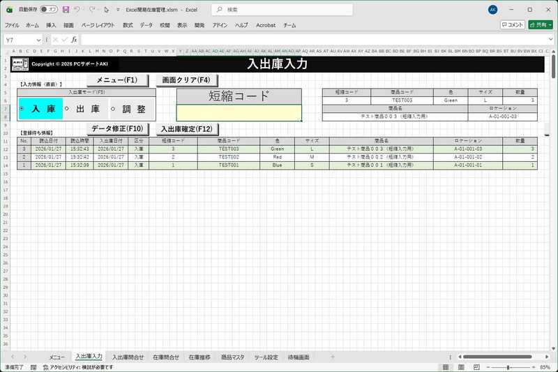 入力がとっても楽チンなExcel版の簡易在庫管理システム