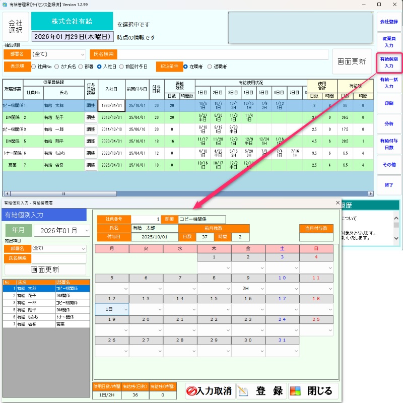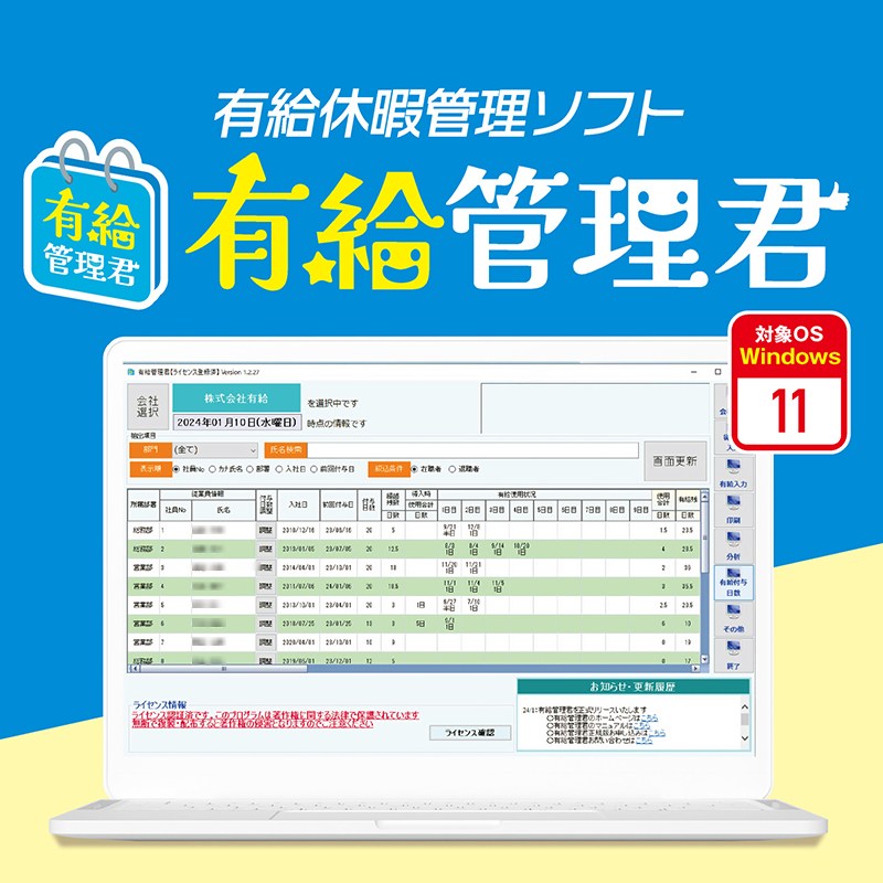 有給管理君試用版(管理簿対応・有給休暇管理ソフト)のダウンロードページへ