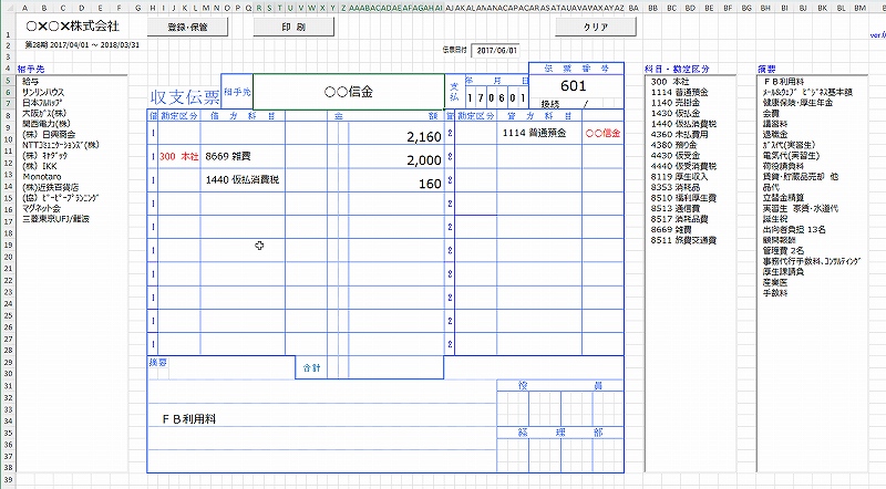 日々の収支伝票の起票や印刷の手間をリストボックスや再利用で大幅に改善