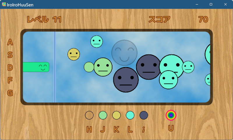 色々な色の風船を膨らまして上にあげる脳トレアプリ