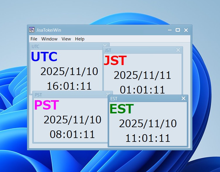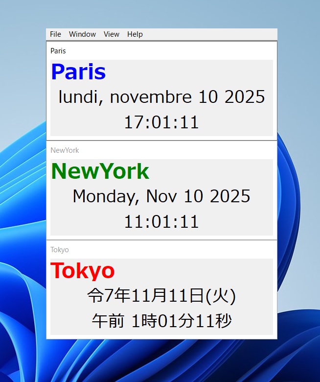 【任意設定】の時差・名称・書式で【複数の日時】を同時表示する時計プログラム