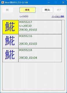 Wordのカーソルの前の文字(IVS文字を含む)のUnicodeから、異体字を検索・入力することができる
