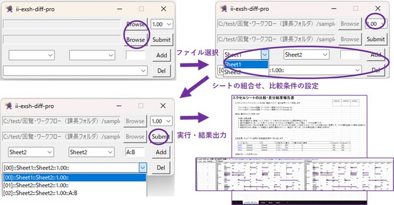 2つのエクセルファイル間の差分を比較し、差分を抽出・可視化するツール