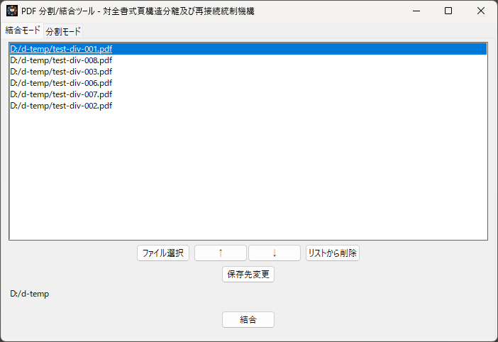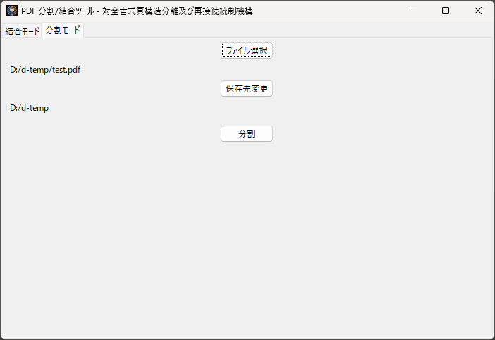 PDFファイルを対象に 分割(ページ分離) および 結合(ページ結合) を行うGUIツール