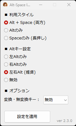 左右Alt・Space長押しと変換無変換キーで、IMEを劇的に切り替え! Mac風の操作感をWindowsに